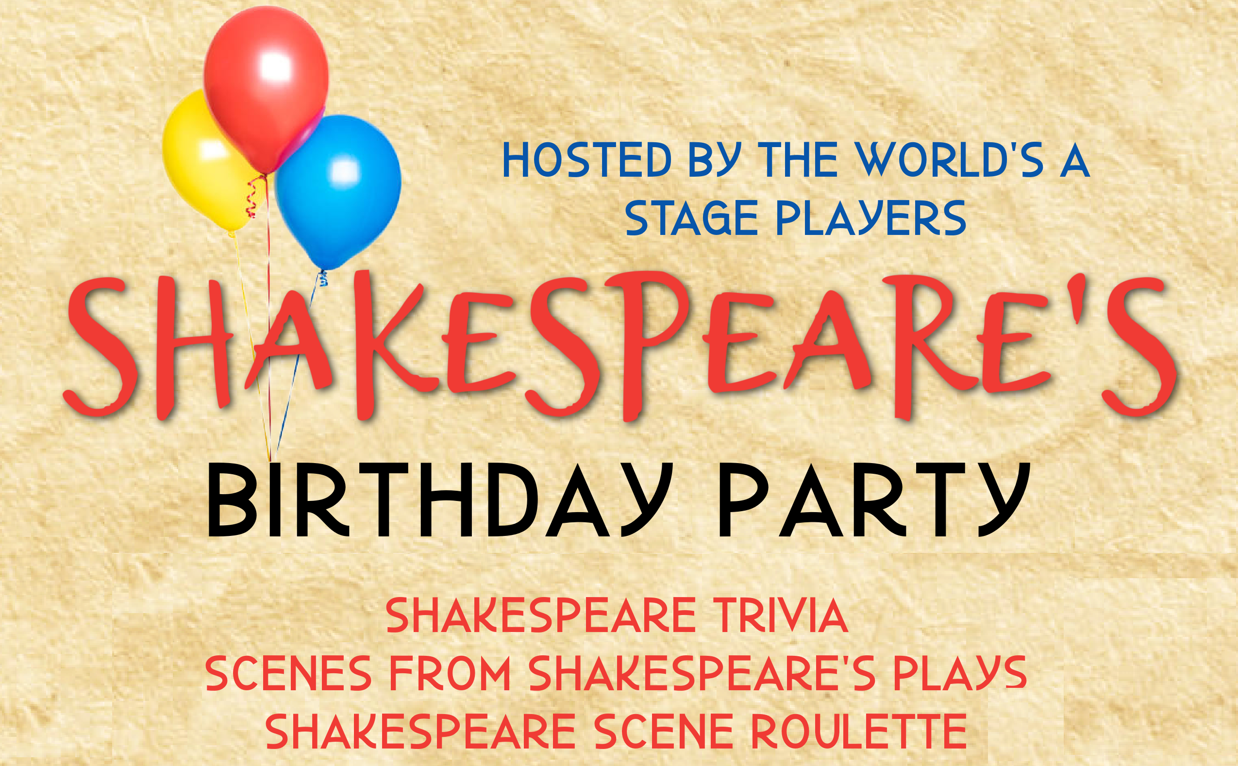 The World's A Stage Players, the resident Shakespeare troupe of The Concord Players, are excited to announce our second annual birthday party celebrating the life of the Bard.