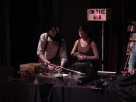 On Sunday, January 20, Jerry Robbins and his merry gang brought old time radio alive again on the stage of 51 Walden St. The occasion was a fund raiser to help defray the expenses for us to take our production of Jacques Brel to the National competition. The event was a tremendous success! We sold out the 200 tickets long before the event. Following this are some images of the show: |